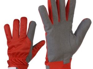Cimdi kazādas ar klipsi, ar sarkanu elastīga auduma virspusi